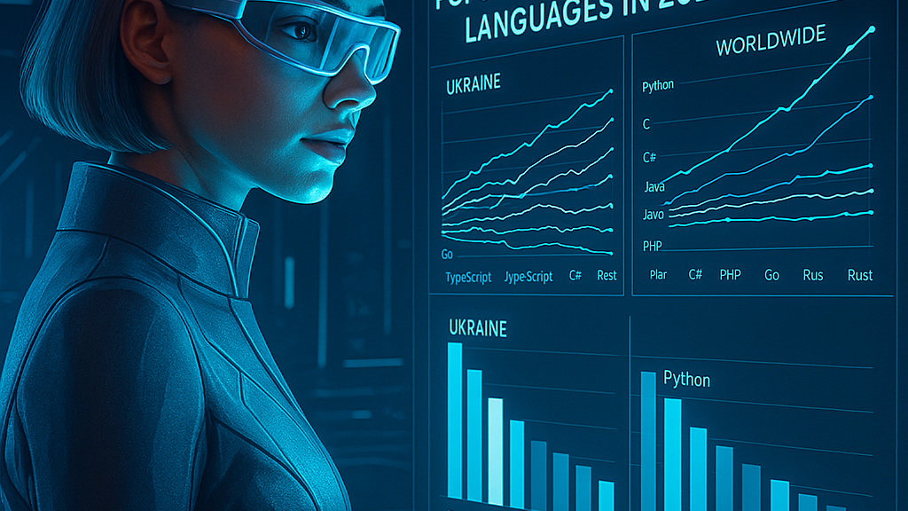 - Лінія TypeScript впевнено зростає й у 2025 виходить на перше місце.