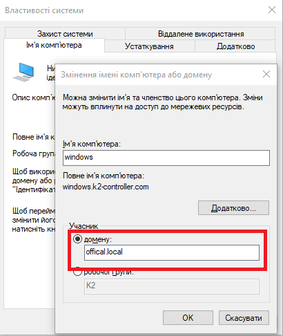 Додавання до домену: Виберіть "Перейменувати ПК"